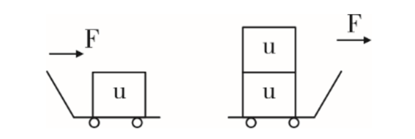 83、如圖所示,倉庫工人計劃用小車運送三箱貨物,第一次先用大小為F的力將一箱貨物從A倉庫推到B倉庫,第二次用同樣大小的力將兩箱貨物從A倉庫拉到B倉庫。則在貨物的移動過程中,關(guān)于兩次做功的情況下列說法正確的是( )。
