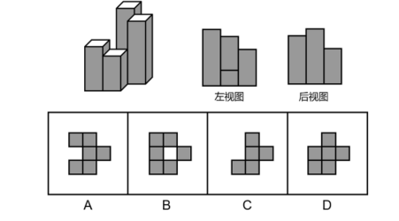55.下方分別是一個由長方體堆積而成的立體圖形和該立體圖形的左視圖、后視圖,那么該立體圖形的俯視圖是( )