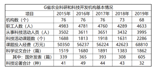 68.2015-2019年,G省農(nóng)業(yè)科研和科技開發(fā)機構(gòu)課題投入經(jīng)費平均每年增加( )萬元。