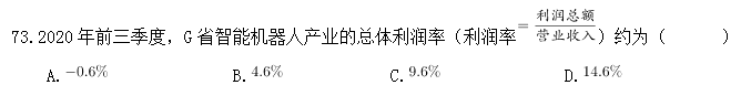 D.2020年前三季度,G省智能機器人產(chǎn)業(yè)中利潤率最高的行業(yè)是特殊作業(yè)工業(yè)機器人制造業(yè)