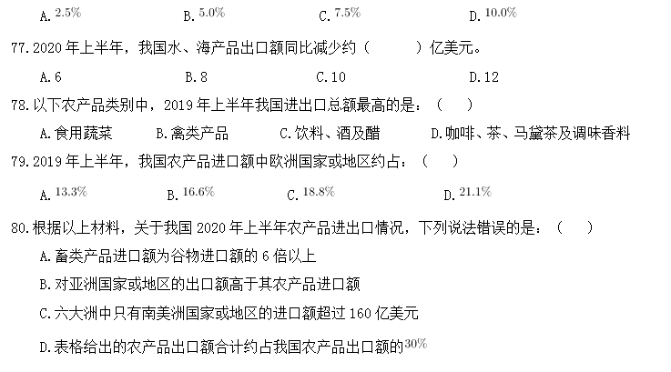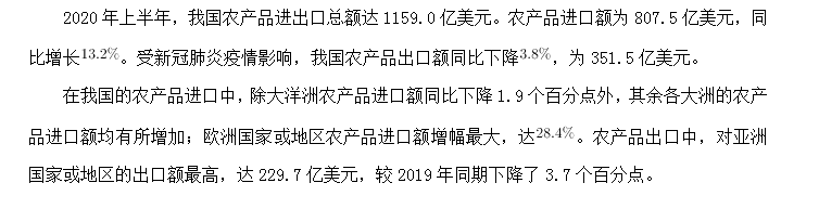 76.2020年上半年,我國農(nóng)產(chǎn)品進出口額同比增長約:( )