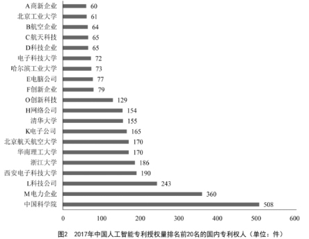 D.2017年排名前20名的國內(nèi)專利權(quán)人,其人工智能專利授權(quán)量占當(dāng)年人工智能專利授權(quán)總量的比例超過了40%