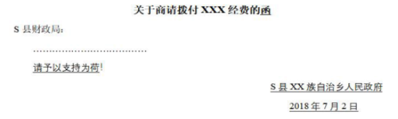 A.函 B.請予以支持為荷 C.2018年7月2日 D.S縣XX族自治鄉(xiāng)人民政府