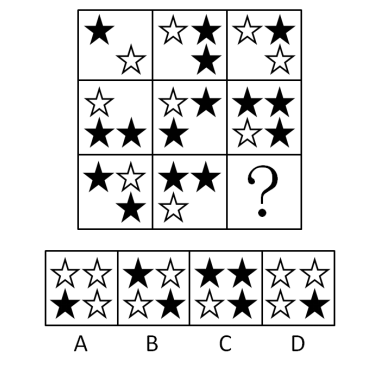 29.從所給的四個(gè)選項(xiàng)中,選擇最合適的一個(gè)填入問(wèn)號(hào)處,使之呈現(xiàn)一定的規(guī)律性: ( )