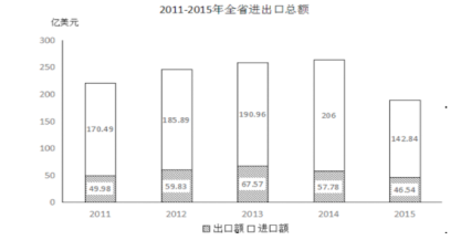 A、2011-2015年,該省的進(jìn)出口貿(mào)易總額的變化趨勢(shì)是先增后減