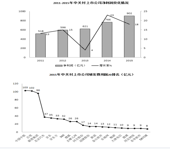 94.2011-2015年間,中關(guān)村上市公司凈利潤(rùn)年均增加值約為:( )