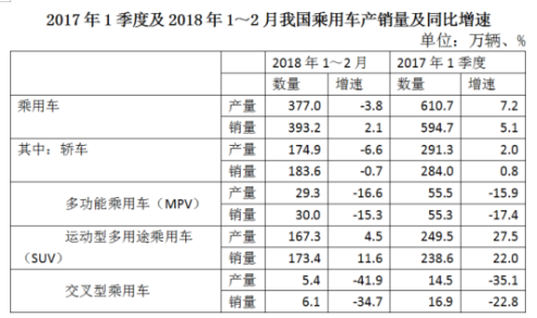2017年全年,我國(guó)乘用車產(chǎn)量為2483.1萬(wàn)輛,同比增長(zhǎng)2.1%,銷量為2474.4萬(wàn)輛,同比增長(zhǎng)1.9%。