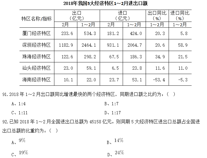 94.2018年2月,表中進口額環(huán)比下降速度最快的經(jīng)濟特區(qū)是:( )