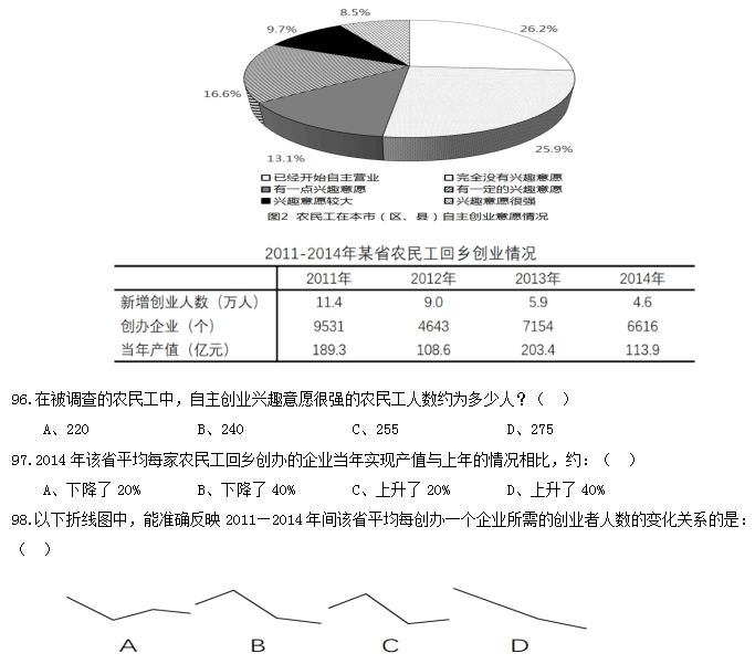 99.根據(jù)調(diào)查結(jié)果,哪項舉措最有可能有效提升農(nóng)民工回鄉(xiāng)創(chuàng)業(yè)的意愿?( )