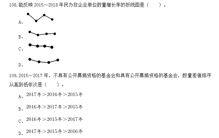 B、2017年,民辦非企業(yè)單位數(shù)量增量高于社會(huì)團(tuán)體增量