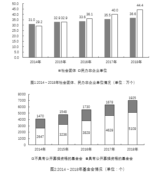 截至2018年底,全國(guó)共有社會(huì)組織81.7萬(wàn)個(gè),比上年增長(zhǎng)7.3%,其中社會(huì)團(tuán)體36.6萬(wàn)個(gè),民辦非企業(yè)單位44.4萬(wàn)個(gè),基金會(huì)7034個(gè);吸納社會(huì)各類(lèi)人員就業(yè)980.4萬(wàn)人,比上年增長(zhǎng)13.4%。