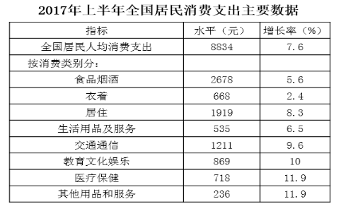 115.2017年上半年,全國居民消費支出主要數(shù)據(jù)按消費類別分。下列哪一個經(jīng)濟指標(biāo)值最大?( )