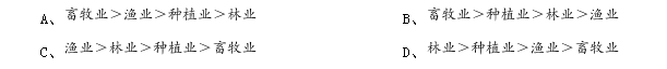 A、種植業(yè)、漁業(yè) B、林業(yè)、畜牧業(yè) C、種植業(yè)、畜牧業(yè) D、農(nóng)林牧漁服務(wù)業(yè)、林業(yè)