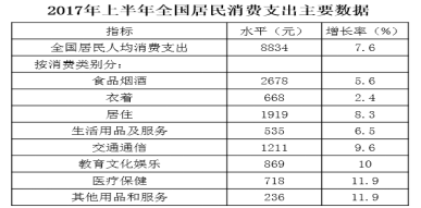120.2017年上半年,全國居民消費支出主要數(shù)據(jù)按消費類別分。下列哪一個經(jīng)濟指標(biāo)值最大?( )