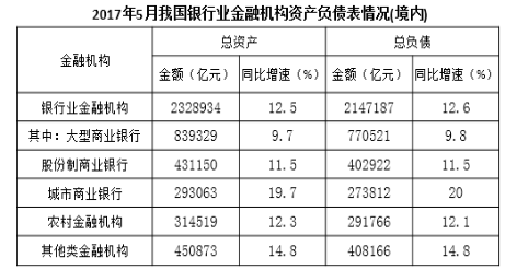 107.在2017年5月我國銀行業(yè)金融機構(gòu)資產(chǎn)負債表中,下列哪一項的總資產(chǎn)同比增長額最高?( )