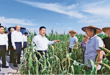 2021年9月13日至14日,中共中央總書記、國(guó)家主席、中央軍委主席習(xí)近平在陜西省榆林市考察。這是13日下午,習(xí)近平在米脂縣銀州街道高西溝村臨時(shí)下車,察看糧食作物長(zhǎng)勢(shì),同正在田間勞作的老鄉(xiāng)拉家常。新華社記者李學(xué)仁/攝