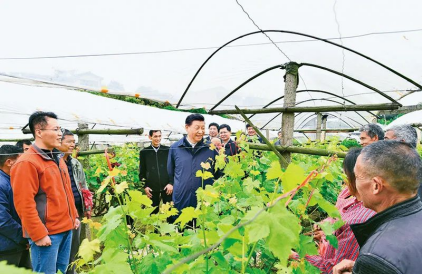 2021年4月25日至27日,中共中央總書記、國(guó)家主席、中央軍委主席習(xí)近平在廣西考察。這是25日上午,習(xí)近平在桂林市全州縣才灣鎮(zhèn)毛竹山村,走進(jìn)葡萄種植園,同農(nóng)技人員和村民親切交流。新華社記者謝環(huán)馳/攝