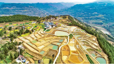 耕地是糧食生產(chǎn)的命根子,必須確保18億畝耕地實至名歸。近年來,四川省巴中市通江縣在山區(qū)將零散、異形、坡度較大的土地進行宜機化改造,讓“零碎地”變標準田、閑置土地變良田。圖為2022年3月14日,通江縣鐵佛鎮(zhèn)中嶺村宜機化改造后的土地,進行了玉米大豆帶狀復(fù)合種植的田園景色。求是圖片程聰/攝