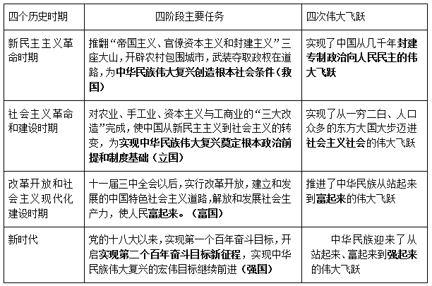 記憶要點(diǎn):四階段主要任務(wù)——救國(guó)、立國(guó)、富國(guó)、強(qiáng)國(guó);
