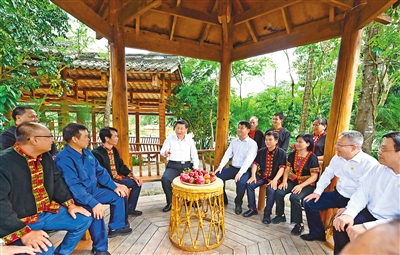 4月10日至13日,習(xí)近平在海南省委書記沈曉明、省長馮飛陪同下,先后來到三亞、五指山、儋州等地,深入科研單位、國家公園、黎族村寨、港口碼頭等進(jìn)行調(diào)研。