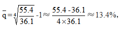 為百分?jǐn)?shù),因此在該式計(jì)算過(guò)程中從第三項(xiàng)開(kāi)始數(shù)值就會(huì)非常小,可以忽略不計(jì),估算時(shí)只取前兩項(xiàng)計(jì)算即可,即