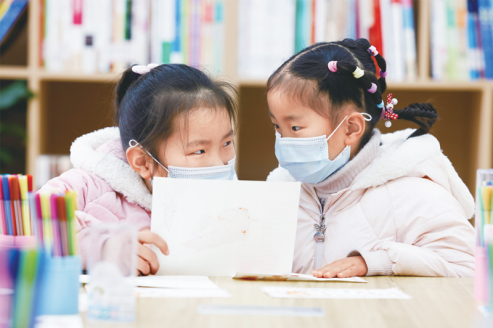 加強對農(nóng)村“三留守”人員等特殊和困難群體的關(guān)心關(guān)愛是社會救助工作的一項重要任務(wù)。寒假期間,江蘇省宿遷市泗洪縣瑤溝鄉(xiāng)招募志愿者,開辦留守兒童愛心托管班,為孩子提供免費的閱讀、學(xué)習、書畫創(chuàng)作環(huán)境。圖為2022年1月22日,在泗洪縣瑤溝鄉(xiāng)官塘社區(qū)新時代文明實踐站,參加愛心托管班的小朋友交流繪制的年畫。新華社發(fā) 許昌亮/攝