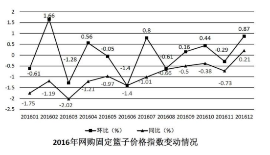 B.2016年,每個月網(wǎng)購固定籃子價格指數(shù)都低于上年同期