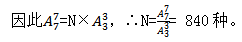 (6)定序排列。第一步,設(shè)固定甲、乙、丙從左至右順序的排列總數(shù)為N,第二步,對(duì)甲、乙、丙進(jìn)行全排列,則為七個(gè)人的全排列,