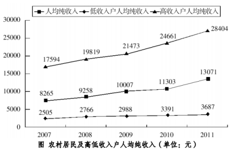 問題:2008~2011年,低收入戶人均純收入與上年相比增長最快的年份是:( )