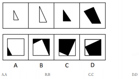 上邊四張紙片,每張紙片一面是黑色,另一面是白色,下邊僅有一項能由其拼合(可以平移、旋轉、翻轉)而成,請把它找出來。( )