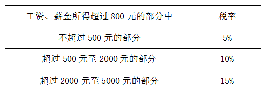 15.依法納稅是公民的義務(wù),按規(guī)定,全月工資薪金所得不超過(guò)800元的部分不必納稅,超過(guò)800元的部分,按下列分段累進(jìn)計(jì)算稅款,某人5月份應(yīng)繳納此項(xiàng)稅款26.78元,則他的當(dāng)月工資薪金所得介于:( )。