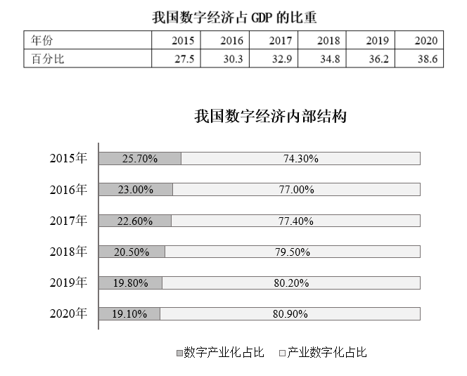 C.2020年數(shù)字經(jīng)濟(jì)內(nèi)部結(jié)構(gòu)大約呈現(xiàn)“二八”比例分布