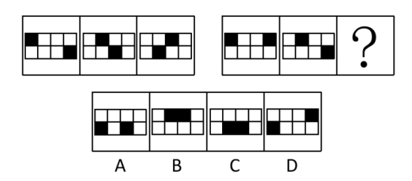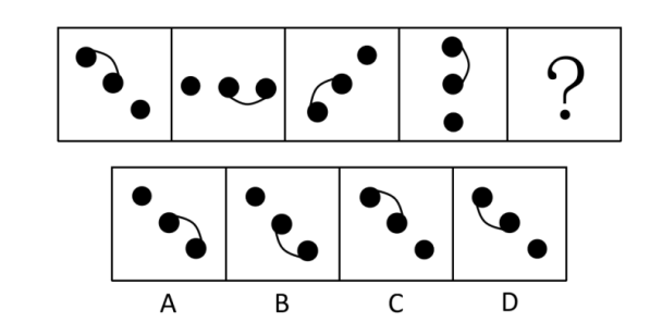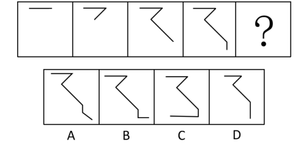 76.請選擇最合適的一項填入問號處,使之符合之前四個圖形的變化規(guī)律:( )