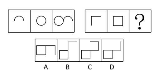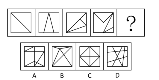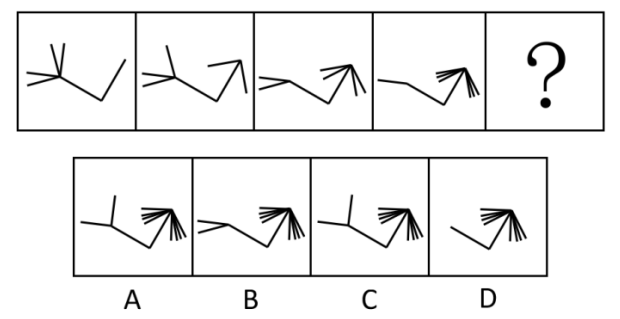 83.請選擇最合適的一項填入問號處,使之符合之前四個圖形的變化規(guī)律:( )