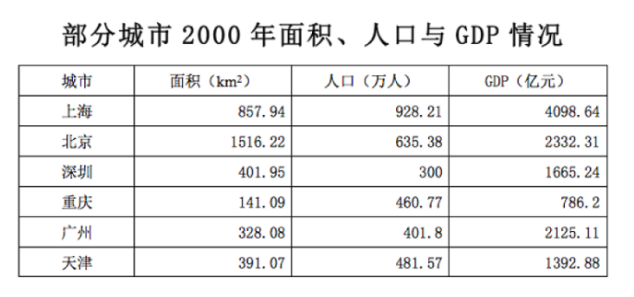 86.2000年GDP總量最高城市的人均GDP約為多少元?( )