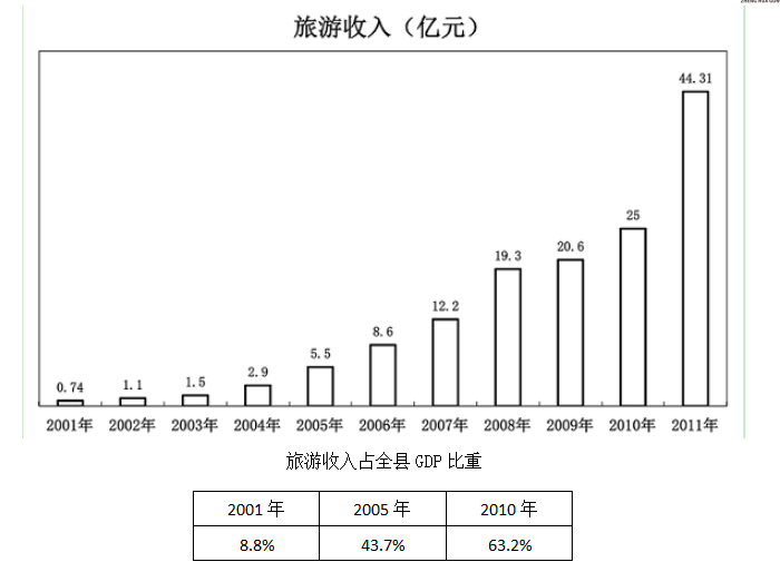 B、該縣的旅游收入占全縣GDP的比重日益上升