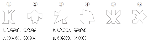 例4:把下面的六個(gè)圖形分為兩類,使每一類圖形都有各自的共同特征或規(guī)律,分類正確的一項(xiàng)是:( )