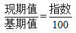 若利用指數(shù)求解,基期看做100,現(xiàn)期值等價(jià)于指數(shù),則