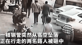 (1)工人樓上施工,大風將鋼管吹落,兩名路人被砸中,導致一死一傷。