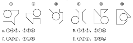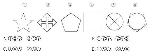 例題:把下面的六個(gè)圖形分為兩類,使每一類圖形都有各自的共同特征或規(guī)律,分類正確的一項(xiàng)是( )。