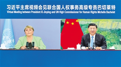 5月25日,國家主席習近平在北京以視頻方式會見聯(lián)合國人權(quán)事務(wù)高級專員巴切萊特。