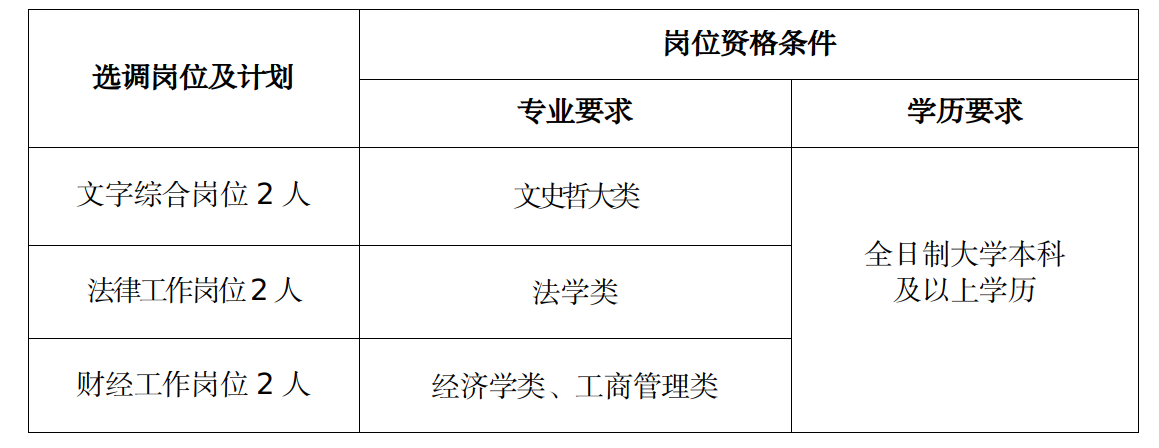 本次計(jì)劃公開選調(diào)公務(wù)員6名。具體崗位和資格條件見下表。