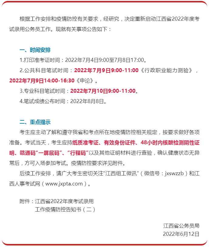 最新消息!2022年江西公務(wù)員考試筆試時(shí)間公布:7月9-10日舉行!官方通知如下: