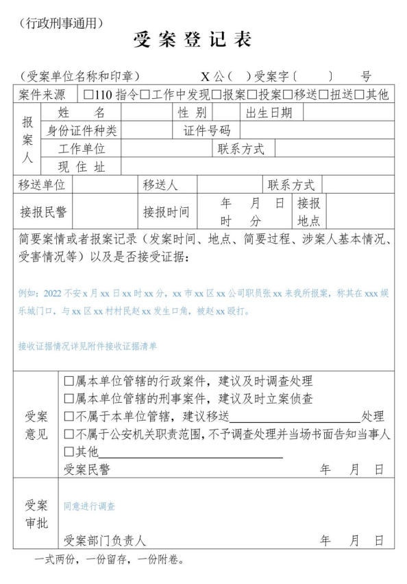 【公安知識(shí)】受案登記表、受案回執(zhí)規(guī)范及模板