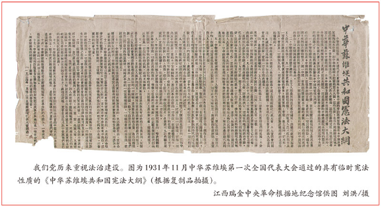 ◆黨始終重視憲法建設(shè),革命戰(zhàn)爭年代陸續(xù)頒布了中華蘇維埃共和國憲法大綱(1931年)、陜甘寧邊區(qū)憲法原則(1946年);1948年通過起臨時(shí)憲法作用的中國人民政治協(xié)商會(huì)議共同綱領(lǐng),1954年9月頒布新中國第一部憲法;適應(yīng)改革開放和社會(huì)主義現(xiàn)代化建設(shè)需要全面修改施行現(xiàn)行憲法(1982年)。