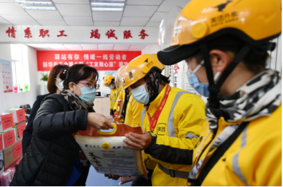 圖為2022年 4月28日,寧夏銀川市興慶區(qū)新華街工會(huì)工作人員根據(jù)征集來的“工友微心愿”準(zhǔn)備慰問品,為勞動(dòng)者送上電飯煲、保溫壺、夏涼被、米、面、油等禮物。新華社記者 王鵬 /攝