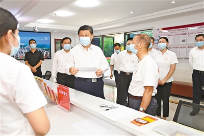 28日下午,習(xí)近平在湖北省委書記王蒙徽、省長王忠林陪同下,深入武漢的企業(yè)、社區(qū)調(diào)研。