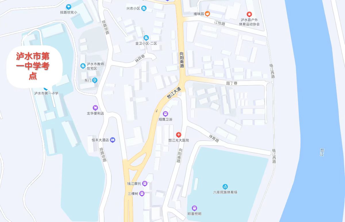 怒江考區(qū)共設(shè)有怒江州民族中學(xué)、瀘水市第一中學(xué)、瀘水市第一完全小學(xué)(新城校區(qū))3個(gè)考點(diǎn)??键c(diǎn)學(xué)校具體地址及地圖指南如下: