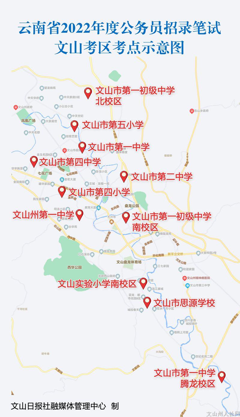 2022年云南公務(wù)員考試文山考區(qū)考點(diǎn)示意圖