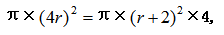 例1:一個圓形,半徑變?yōu)樵瓉淼?/span>4倍之后的圓的面積,等于半徑增加2厘米之后的面積的4倍,則原來的半徑是( )?